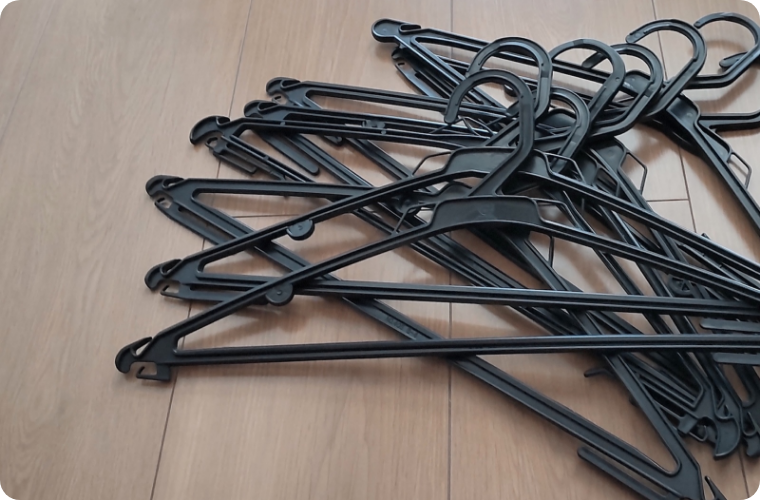 ハンガーを回収することで、家庭ゴミを減らし、資源の節約やCO2 を削減することができます。ご家庭でたまってしまった当社の不要なプラスチックハンガーがございましたら、どうぞお持ちください!