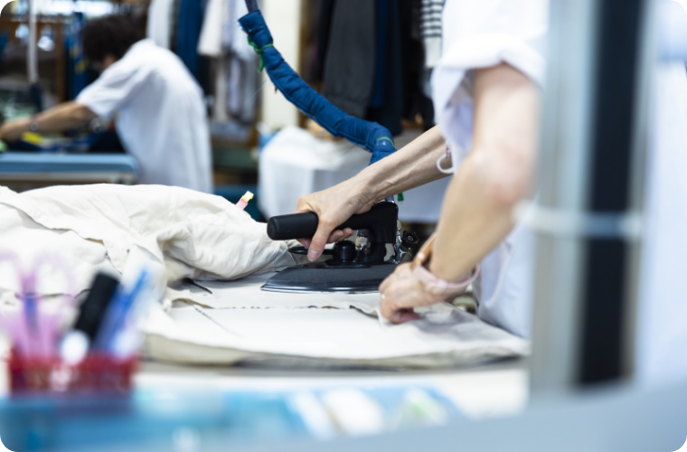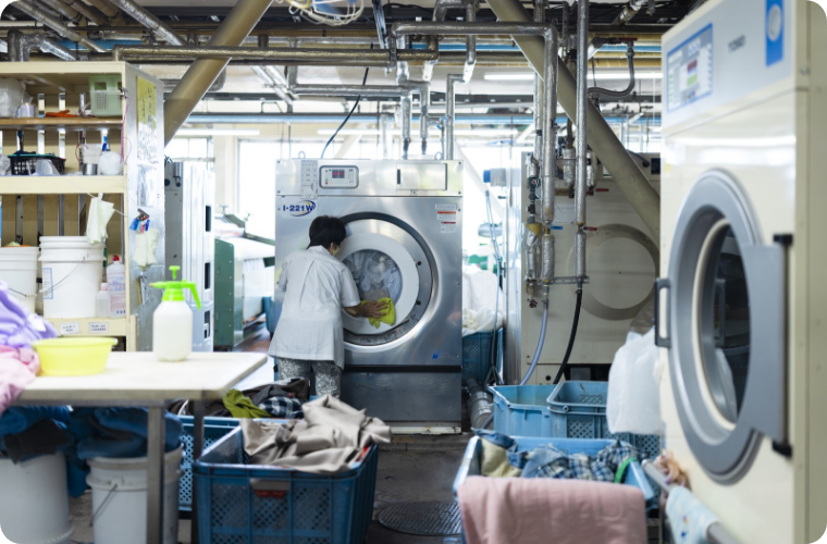 しっかり洗い上げたあと、専門スタッフによるアイロンなどのチェックで仕上げ、美しく仕上げます。殺菌・消毒効果も高く、衛生的です。