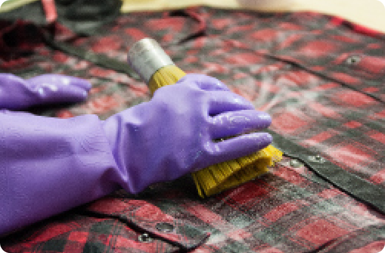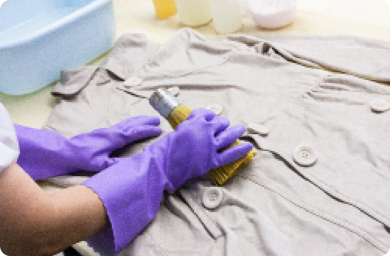皮脂や汗、食べこぼしなど、ドライクリーニングでは除去しにくい汚れをキレイにおとします。